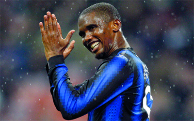 صامويل إيتو يسعى إلى قيادة إنتر ميلان إلى الدور الثاني من دوري الأبطال. أ.ب
