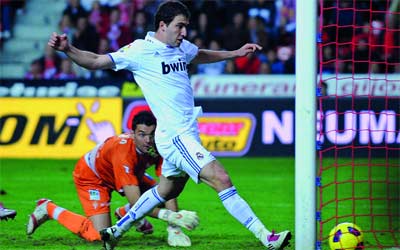 وكان ريال مدريد في طريقه الى إهدار نقطتين ثمينتين، بعدما عجز عن هز شباك سبورتينغ خيخون في الدقائق الـ80 الأولى على الرغم من الكم الكبير من الفرص التي سنحت امام مهاجميه، بيد أن هيغواين عوض الفرص التي اهدرها وهز شباك الضيوف بهدف في الدقيقة ،82 عندما استغل كرة مرتدة من الحارس خوان بابلو اثر ضربة رأسية للدولي الفرنسي كريم بنزيمة، بديل الارجنتيني الآخر انخل دي ماريا، إثر تمريرة عرضية من الألماني مسعود أوزيل، فأفلتت من يدي الحارس فتابعها هيغواين داخل المرمى الخالي. وهو الهدف السادس لهيغواين هذا الموسم، وكان غالياً لأنه اعاد ريال مدريد الى الصدارة برصيد 29 نقطة بفارق نقطة واحدة امام غريمه التقليدي برشلونة حامل اللقب الذي تغلب على فياريال 3-1 السبت الماضي في افتتاح المرحلة.