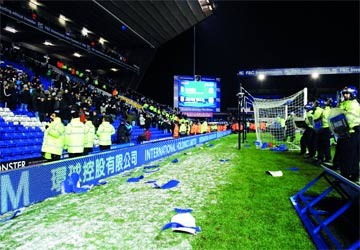 أدان الاتحاد الانجليزي لكرة القدم، أمس، اعمال الشغب التي شهدها ملعب ساينت اندروز أول من أمس، عقب فوز برمنغهام على جاره استون فيلا (2-1) في الدور ربع النهائي من مسابقة كأس رابطة الأندية المحترفة. وكانت جماهير برمنغهام اجتاحت الملعب عقب فوز فريقها على ضيفه وجاره في المدينة وتأهله الى الدور نصف النهائي من المسابقة، ما تسبب في اصابة 14 شخصا، بينهم اربعة من رجال الشرطة، بحسب ما اعلنت الأخيرة مشيرة الى انها اعتقلت خمسة اشخاص.