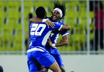 الكويتي فهد العنزي يحتفل بتتويـــــــــــــــــــــــــــــــــــــج الأزرق بطلا للخليج ونيله لقب أفضل لاعب. رويترز