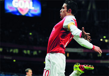 فان بيرسي طار فرحاً بهدفه الأول في شباك بارتيزان بلغراد. غيتي