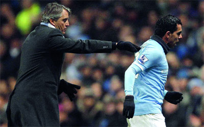 تيفيز لا تربطه علاقة جيدة مع مانشيني. أ.ب