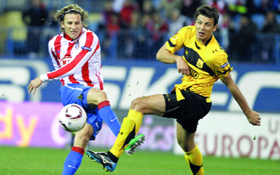 أتلتيكو مهدد بفقدان لقبه في الدوري الأوروبي مبكراً. أ.ب