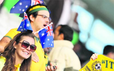 مشجعة أسترالية حضرت لمؤازرة «الكنغارو». تصوير: أسامة أبوغانم