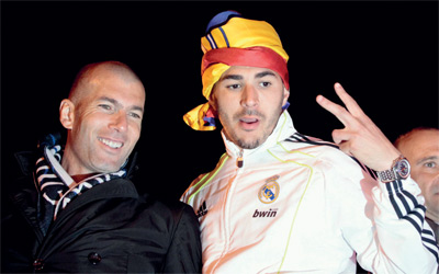 زيدان مع كريم بنزيمة بعد الفوز. رويترز