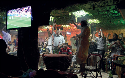 جمهور ريال مدريد وبرشلونة في أحد مقاهي عجمان. تصوير: أسامة أبوغانم