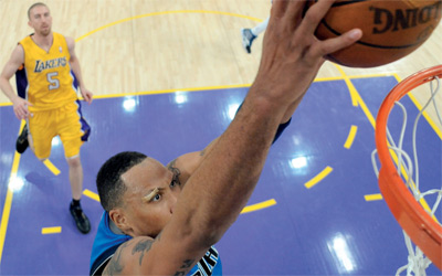 شون ماريون من مافريكس يسجّل في سلة ليكرز. غيتي