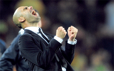 مدرب برشلونة غوارديولا ينفجر فرحاً. أ.ب