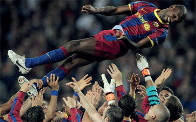 فرض النجم الفرنسي إيريك أبيدال حالة من الشجن على استاد كامب نو مساء الثلاثاء، خلال المباراة التي تعادل فيها الفريق مع ريال مدريد 1/1 في إياب الدور قبل النهائي لدوري أبطال أوروبا. وكان ابيدال أجرى عملية جراحية لإزالة ورم في الكبد في 15 مارس الماضي، ومنذ ذلك الحين لم يشارك في أي مباراة، قبل أن يدفع به المدرب غوسيب غوارديولا في الدقيقة 89 بدلا من كارلس بويول، حيث تفاعلت معه الجماهير بشكل مؤثر وأخذت تصفق له وتهتف باسمه حتى نهاية المباراة. ونقل الموقع الرسمي لبرشلونة عن ابيدال قوله «لم أمر بمثل هذه التجربة من قبل، أشعر بأن الناس تحبني، وأنا أبادلهم هذا الحب، وسأحاول أن أبذل قصارى جهدي داخل الملعب دائما». وتابع «إنني في حالة جيدة، لم أبذل جهدا طوال ثلاثة اسابيع، والآن أعمل بشكل شاق، حلمي كان العودة ومساعدة الفريق في هذه المباراة المهمة».