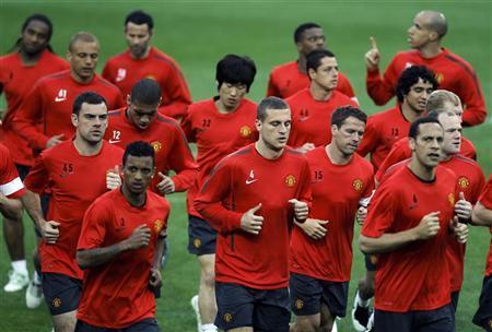 لاعبو مانشستر يونايتد خلال التدريب - رويترز