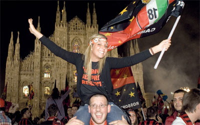توج ميلان بطلاً للدوري الإيطالي لكرة القدم بتعادله مع مضيفه روما صفر-صفر السبت، على الملعب الاولمبي في روما، في افتتاح المرحلة الـ36 من الدوري الايطالي لكرة القدم. وهو اللقب الأول لميلان منذ عام 2004 والـ18 في تاريخه.