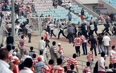 جمهور الإفريقي لدى إثارته الشغب في استاد رادس. أ.ف.ب