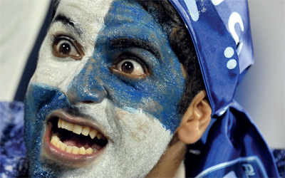 جمهور الهلال يحضر المباراة بأعصاب هادئة. أ.ف.ب