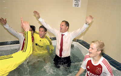 حارس أمستردام (الثاني من اليسار) يحتفل بلقب الدوري. غيتي