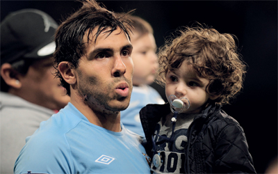 تيفيز مع ابنه بعد فوز مانشستر سيتي. غيتي