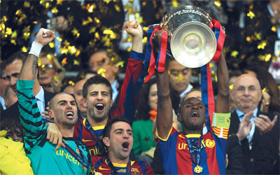 توج برشلونة الاسباني باللقب الرابع في تاريخه عندما جدد فوزه على مانشستر يونايتد الانجليزي 3/،1 مساء أول من أمس، على ملعب «ويمبلي» الشهير في لندن في المباراة النهائية من مسابقة دوري أبطال أوروبا لكرة القدم.