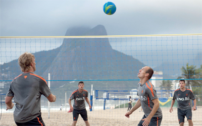 روبن ورفاقه يتدربون على شواطئ البرازيل. أ.ب