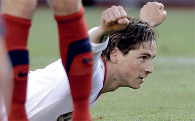 فرناندو توريس يحتفل بتسجيله الهدف الرابع. أ.ب