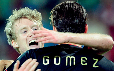 وضعت ألمانيا قدمها في نهائيات كأس أوروبا لكرة القدم، المقررة عام 2012 في بولندا واوكرانيا، بعد فوزها على مضيفها اذربيجان 3-1 في باكو ضمن المجموعة الأولى، اول من أمس.