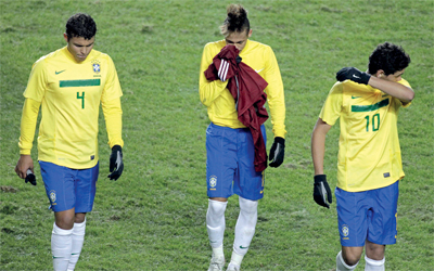 نيمار (وسط) خيّب آمال البرازيليين وأهدر فرصاً سانحة للتسجيل. أ.ب