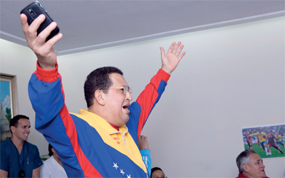 احتفل الرئيس الفنزويلي هوجو شافيز بالفوز الذي حققه منتخب بلاده بهدف على نظيره الإكوادوري، ضمن منافسات المجموعة الثانية لبطولة كوبا أميركا لكرة القدم المقامة حالياً في الأرجنتين.
