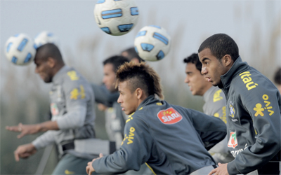 من تدريبات المنتخب البرازيلي قبل لقاء الإكوادور. أ.ب