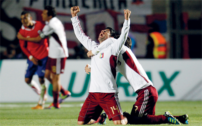 لاعبو فنزويلا غير مصدقين التأهل التاريخي. أ.ب