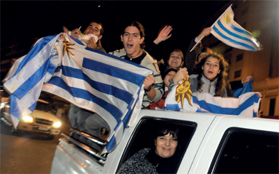 مشجعو أوروغواي خرجوا إلى الشوارع ابتهاجاً بفك عقدة دور الـ 4
