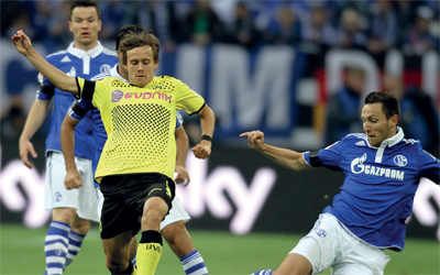 من لقاء سابق لشالكه ودورتموند. أ.ب