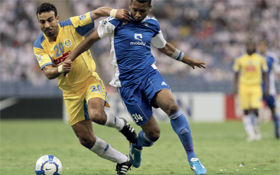 العساس (يسار) من أبرز المحترفين المغاربة في قطر. رويترز