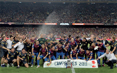 وجاءت أهداف برشلونة عن طريق اندريس اينييستا (15) وميسي (45 و88)، في حين سجل البرتغالي كريستيانو رونالدو (20) والفرنسي كريم بنزيمة (82) هدفي ريال مدريد. وكان ريال سيطر على لقاء الذهاب وتقدم عبر الالماني مسعود اوزيل، قبل ان يضرب الفريق الكاتالوني مرتين، اولا عبر المهاجم دافيد فيا من تسديدة رائعة ثم ميسي، بيد ان ريال عادل في بداية الشوط الثاني عبر شابي الونسو.