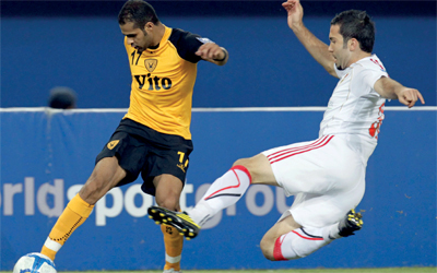 القادسية في لقاء سابق مع الاتحاد الحلبي. رويترز