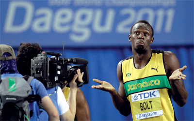 اقتنص العداء الجامايكي يوهان بليك فرصة العمر وانتزع لقب سباق عدو 100 متر، بعدما بددت البداية الخاطئة آمال مواطنه أوسين بولت في الدفاع عن لقبه العالمي لهذا السباق الذي استبعد منه أمس في بطولة العالم الثالثة عشرة لألعاب القوى المقامة حاليا بمدينة دايغو في كوريا الجنوبية.