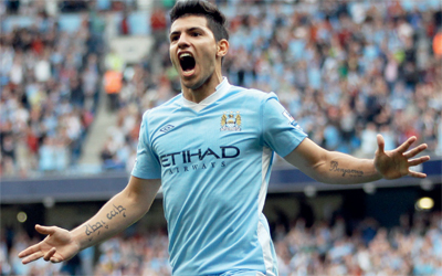 الأرجنتيني أغويرو مفتاح «السيتي» لهز شباك نابولي. أ.ف.ب