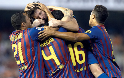 حقق كل من برشلونة حامل اللقب وريال مدريد وصيفه فوزاً كبيراً، الأول على ضيفه اتلتيكو مدريد بخماسية نظيفة منها ثلاثية للأرجنتيني ليونيل ميسي، والثاني على ضيفه رايو فاليكانو العائد الى الأضواء 6-2 منها ثلاثية أيضاً للبرتغالي كريستيانو رونالدو، وحرم اشبيلية ضيفه فالنسيا استعادة الصدارة بفوزه عليه 1-صفر في افتتاح المرحلة السادسة من الدوري الإسباني لكرة القدم.