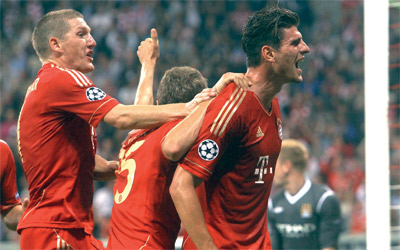 وفي المجموعة الأولى، حسم ماريو غوميز موقعة «اليانز ارينا» بتسجيله هدفي بايرن ميونيخ في مرمى مانشستر سيتي، مانحاً فريقه فوزه الثاني بعد الذي حققه في الجولة الأولى على حساب فياريال الإسباني 2-صفر أيضاً. وهذا الانتصار العاشر على التوالي لبايرن في جميع المسابقات منذ أن مني بهزيمته الوحيدة أمام بوروسيا مونشنغلادباخ (صفر-1) في المباراة الافتتاحية للدوري الألماني.