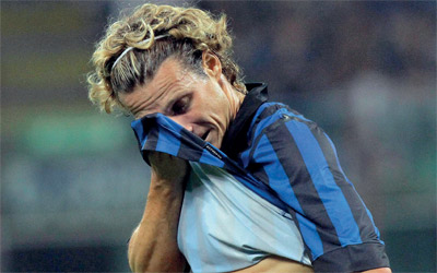لاعب إنتر ميلان فورلان يتحسر على فرصة ضائعة. رويترز