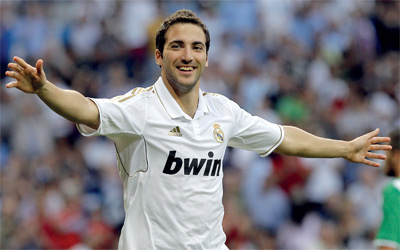 هيغواين تفنن في إصابة مرمى بيتيس. أ.ف.ب
