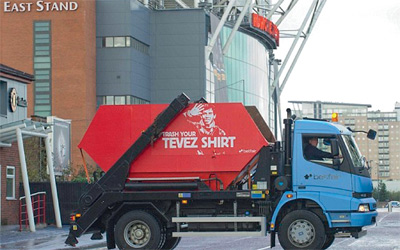 قامت شركة «بيتفير» للمراهنات التي تعد راعيا تجاريا لنادي مانشستر يونايتد الإنجليزي، بتجهيز شاحنة إعادة تدوير تحمل اللونين الأحمر والسماوي، في إشارة لناديي مانشستر يونايتد ومانشستر سيتي، مع عبارة «ارم قميص تيفيز في النفاية»، وذلك لدفع مشجعي الفريقين لرمي القمصان التي تحمل اسم الأرجنتيني الدولي كارلوس تيفيز، سواء خلال لعبه مع مانشستر يونايتد أو مع فريقه الحالي مانشستر سيتي، حيث سبق أن لعب لليونايتد بين 2007 و،2009 ويلعب حاليا في سيتي.