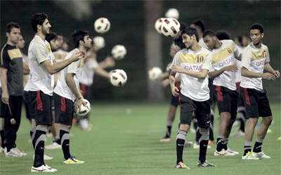 من تدريبات سابقة للمنتخب القطري الأولمبي. رويترز