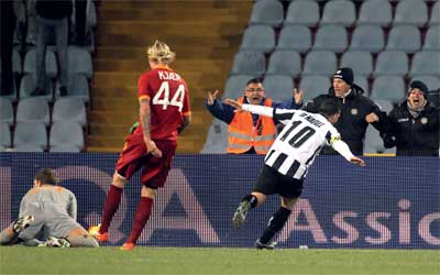 اعتلى أودينيزي الصدارة مؤقتاً إثر فوزه على ضيفه روما بهدفين نظيفين في وقت حرج، أول من أمس، في افتتاح المرحلة الـ13 من الدوري الايطالي لكرة القدم.