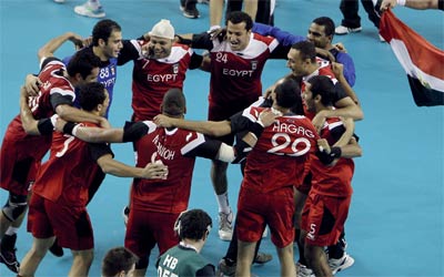 فرحة مصرية بعد الفوز بذهبية اليد على حساب قطر. أ.ف.ب
