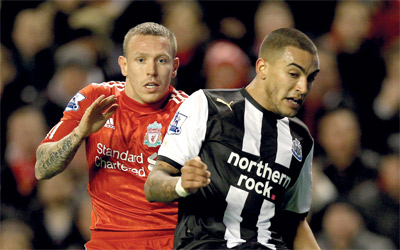 وسجل الويلزي كريغ بيلامي (29 و67) وستيفن جيرارد (78) اهداف ليفربول، والدنماركي دانيال اغر (26 خطأ في مرمى فريقه) هدف نيوكاسل. وافتقد ليفربول خدمات مهاجمه الاوروغوياني لويس سواريز، صاحب خمسة اهداف في الدوري هذا الموسم، وذلك بعدما قرر الاتحاد الانجليزي ايقافه لمباراة واحدة وتغريمه مبلغ 20 الف جنيه استرليني بسبب الحركة التي قام بها تجاه جماهير فولهام في الخامس من الشهر الماضي، وهذه العقوبة لا علاقة لها بتلك التي نالها المهاجم الاوروغوياني أخيرا حين اوقف لثماني مباريات مع تغريمه مبلغ 40 الف جنيه استرليني بسبب الالفاظ العنصرية التي وجهها لمدافع مانشستر يونايتد الفرنسي باتريس ايفرا خلال مباراة الفريقين في الدوري المحلي في 15 اكتوبر الماضي. وعلى ملعب «انفيلد رود»، ترك مدرب ليفربول الاسكتلندي كيني دالغليش لاعب وسطه العائد ستيفن جيرارد والهولندي ديرك كاوت والارجنتيني المتألق أخيرا ماكسي رودريغيز على دكة البدلاء. وكان جيرارد شارك بديلا في مباراة بلاكبيرن الاخيرة لأول مرة منذ اكتوبر الماضي. وفي ظل غياب سواريز، شارك العملاق اندي كارول امام فريقه السابق الذي باعه الى ليفربول مقابل 35 مليون جنيه استرليني، ولعب الى جانبه الويلزي المخضرم كريغ بيلامي. ومن العرضية التالية لراين تايلور لعب الفرنسي يوهان كاباي رأسية ارتدت من يد الدنماركي دانيال اغر عن طريق الخطأ داخل شباك الحارس الاسباني لليفربول بيبي رينا (26). واثمر الضغط الرهيب لليفربول عن هدف التعادل بسرعة بعد ان شتت لاعب الوسط العاجي شيخ تيوتي الكرة داخل المنطقة نحو بيلامي (32 عاما) الذي اطلق تسديدة ارضية سكنت شباك كارول (29). ومن ضربة حرة من خارج المنطقة، سدد بيلامي كرة قوية اربكت الحارس كرول والمدافع داني سيمبسون، فاخترقت شباك نيوكاسل معلنة الهدف الثاني للمضيف (67). وقضى جيرارد على امال نيوكاسل بعد ان استلم تمريرة من جوردان هندرسون داخل المنطقة فلعبها ارضية بيسراه هزت شباك كرول للمرة الثالثة (78).