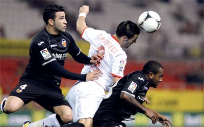 حسم فالنسيا مواجهته القوية مع إشبيلية وبلغ الدور ربع النهائي من مسابقة كأس اسبانيا لكرة القدم، رغم خسارته امامه 1-2 مساء أول من أمس على ملعب رامون سانشيز بيزخوان، في اياب ثمن النهائي، وذلك لفوزه ذهابا في ملعبه ميستايا 1-صفر.
