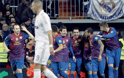 يبحث ريال مدريد حامل اللقب مجدداً عن هويته الضائعة في سلسلة مواجهاته مع غريمه التاريخي برشلونة عندما يحل ضيفاً عليه في اياب الدور ربع النهائي من مسابقة كأس اسبانيا الكرة القدم، بعد أن سقط امامه الاسبوع الماضي على ملعبه 1-.2 وكان الفريق الكاتالوني قلب تخلفه ذهاباً بهدف البرتغالي كريستيانو رونالدو الى فوز 2-1 بهدفين من المدافعين كارليس بويول والفرنسي اريك ابيدال.