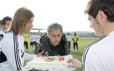 مورينيو يطفئ الشمعة الـ 49 بحضور كاسياس وراموس. إي.بي.إيه