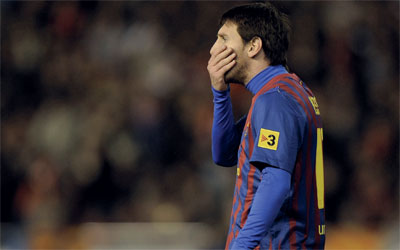 ميسي غير مصدق تضييعه ركلة جزاء أمام فالنسيا. أ.ف.ب
