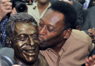 بيليه يقبل تمثاله في العاصمة الغابونية. أ.ف.ب