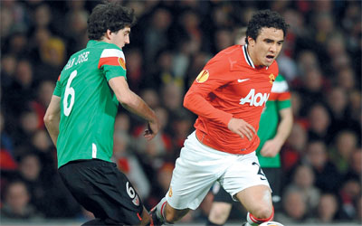 خسر مانشستر يونايتد الانجليزي امام ضيفه اتلتيك بلباو الإسباني 2-3 الخميس، في مانشستر في ذهاب الدور ثمن النهائي من مسابقة الدوري الاوروبي لكرة القدم (يوروبا ليغ). وسجل واين روني (22 و90+2 من ركلة جزاء) هدفي مانشستر يونايتد، وفرناندو لورنتي (44) واوسكار دي ماركوس (72) وايكر مونياين (90) اهداف اتلتيك بلباو. ويلتقي الفريقان ايابا الخميس المقبل في بلباو. وفاز فالنسيا الاسباني على ضيفه ايندهوفن الهولندي 4-،2 وسجل فيكتور رويز (11) وروبرتو سولدادو (13 و43 من ركلة جزاء) وبابلو بياتي (56) اهداف فالنسيا، والسويدي اولا تويفونن (83 من ركلة جزاء) وجورجينو فيينالدوم (90+2) هدفي ايندهوفن.