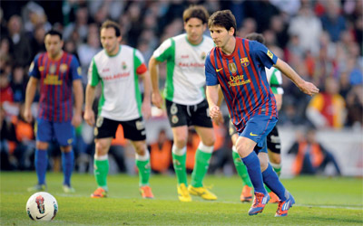ورفع ميسي رصيده الى 50 هدفا في مختلف المسابقات هذا الموسم مع الفريق الكاتالوني، وأهدر فالنسيا فوزاً في المتناول وسقط في فخ التعادل امام ضيفه ريال مايوركا 2-.2 وكان فالنسيا الثالث في طريقه الى تحقيق فوز سهل عندما تقدم بهدفين في الشوط الاول سجلهما الارجنتيني البرتو فاكوندو كوستا (23)، وادوريث زوبيلدا (42)، لكن ريال مايوركا سجل هدفين في الشوط الثاني عبر ايميليو نسوو (57)، وفيكتور كاستانيو (66).